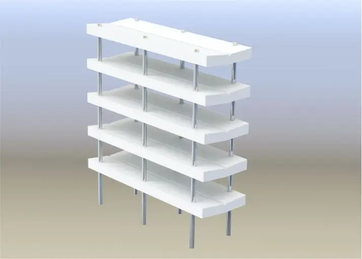 Fabricadas em Fibra de Vidro reforçada com resina poliéster, possuem duplo acabamento liso sanitário GelCoat alimentício na cor branca e pés de Aço Inox AISI 304 de série.
